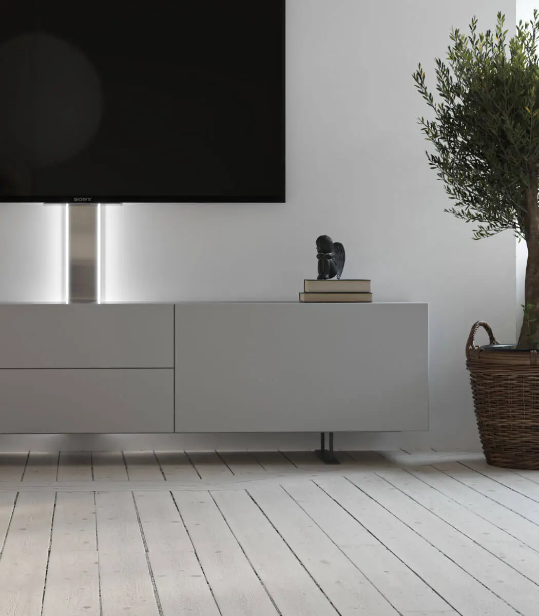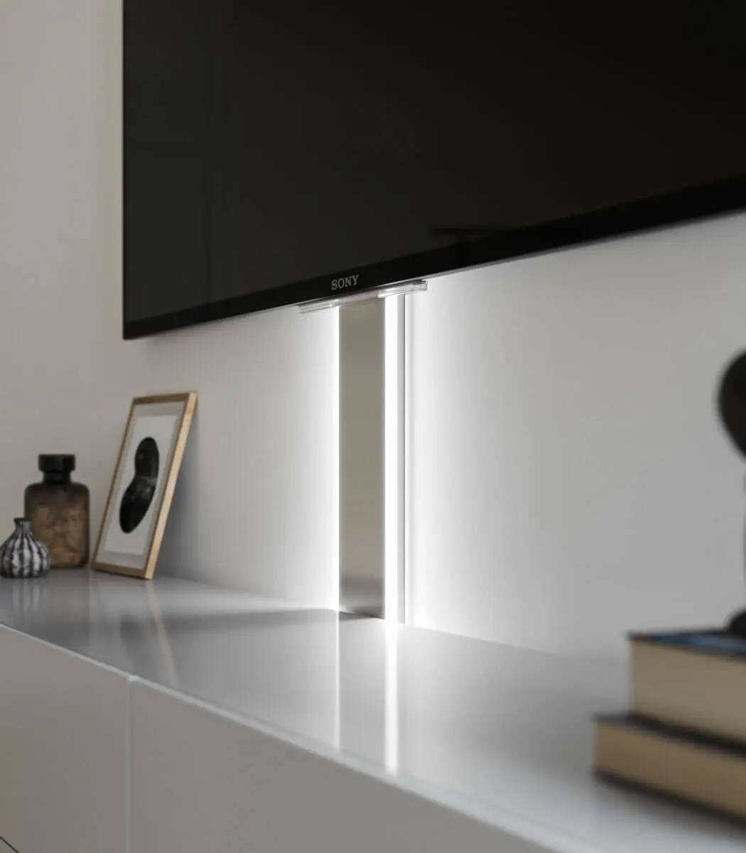 Mit seinem hellen Inox-Look passt dieser TV Kabelkanal perfekt zu hellen Wänden und modernen Einrichtungskonzepten. Die eloxierte Oberfläche verleiht ihm einen exklusiven Charakter.
